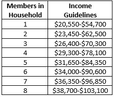 - Fall within the income guidelines displayed here